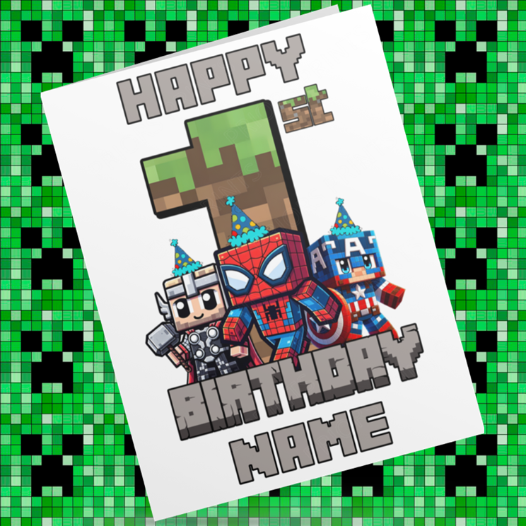 Personalised Minecraft Birthday Card with Age 1-9 Years