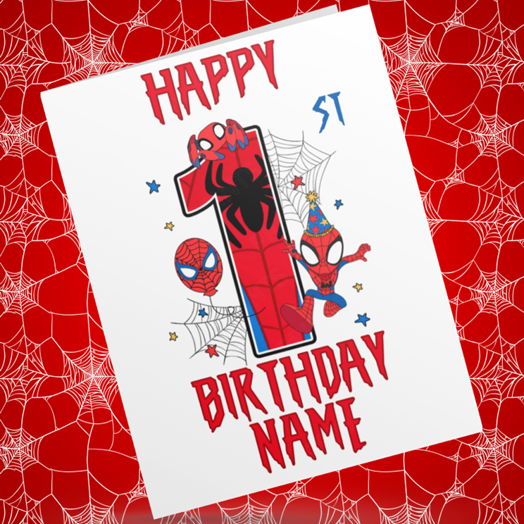 Personalised Spiderman Birthday Card with Age 1-9 Years